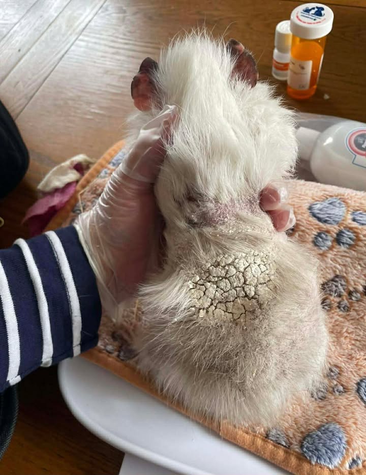 Once she arrived we got immediate vet care. The issue wasn’t a bite as the previous owner had assumed, it was mites and a fungal infection. As Alice had been left untreated for an extremely long period of time her condition had got very serious.