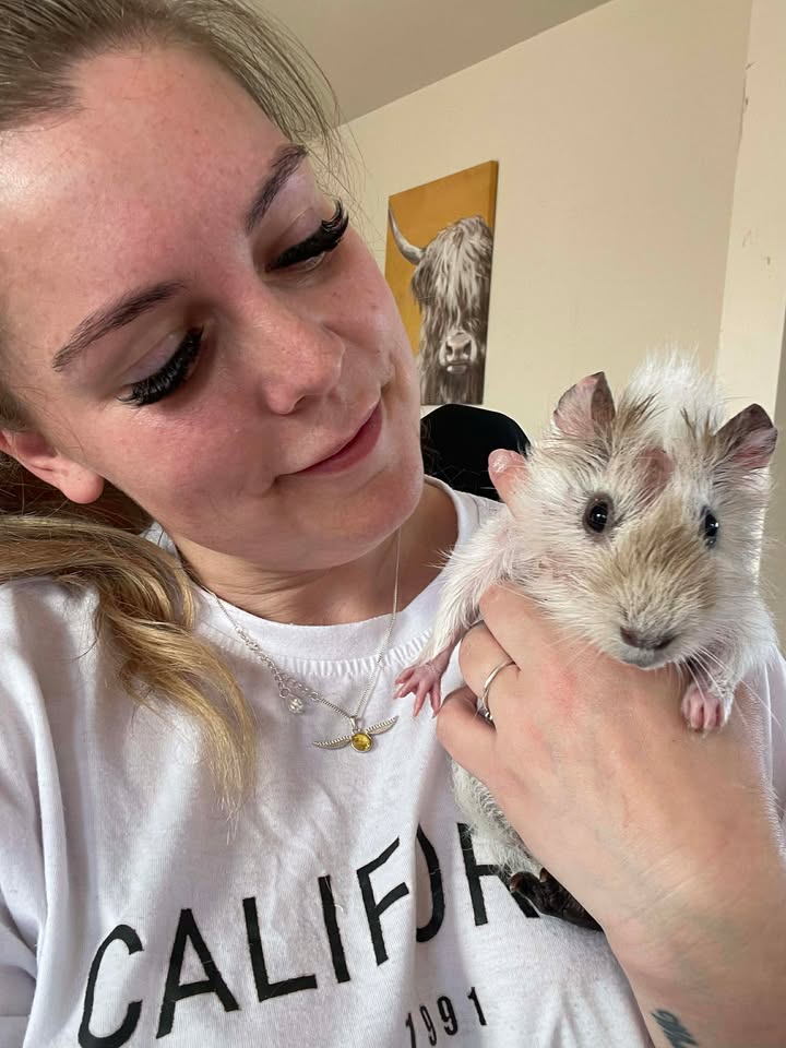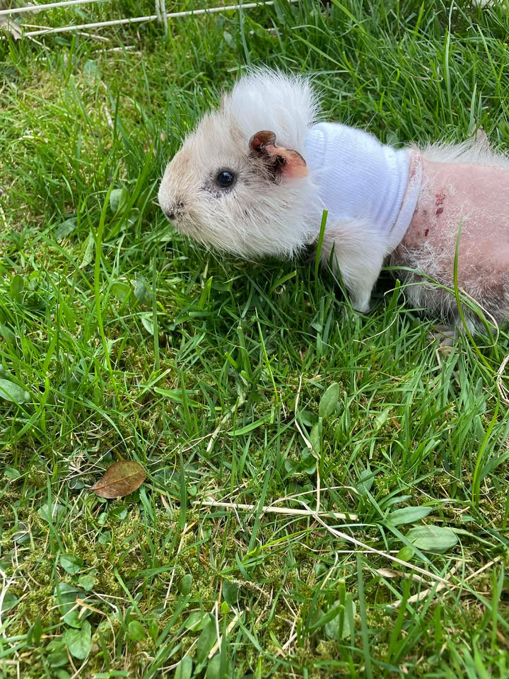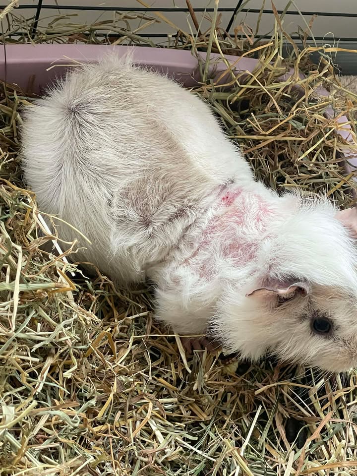 We were contacted by Alice’s previous owner to ask for advice on what to do with Alice as she at the time thought she had been bitten by the ladies other guinea pig. We only had one piece of advice… she needed urgent vet treatment. The previous owner had her living in a washing basket and was trying all sorts of remedies to help as she couldn’t afford the vet care, we begged her to surrender her so we could get her the help she needed.